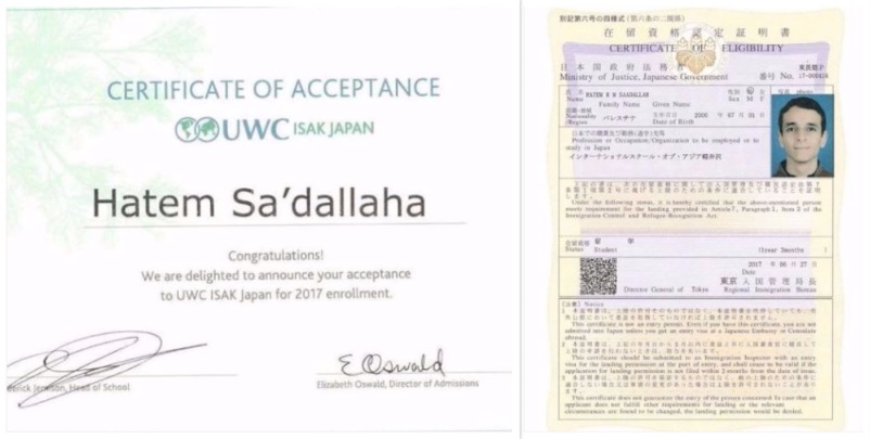 "حاتم سعدالله" طالب ثانوية عامة للعام الدراسي 2017-2018 في قطاع غزة.. تميّز أكاديمياً منذ صغره، حيث حصل على منحة لإكمال دراسته الثانوية في "كوكب اليابان"، ليكون أول فلسطيني يحصل على منحة بمدارس كليات العالم المتحد (UWC) في اليابان.