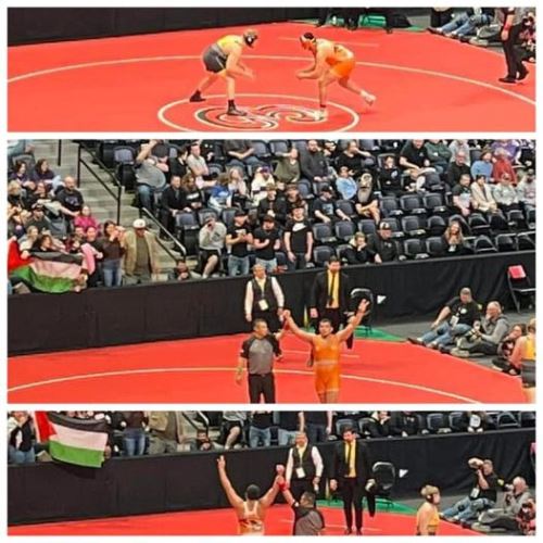 فاز اللاعب ليث معتصم كراجة اليوم الاثنين 20 شباط 2023، ببطولة مدارس ولاية كالورادوا الثانوية للمصارعة الرومانية للوزن الثقيل في الولايات المتحدة الأمريكية.