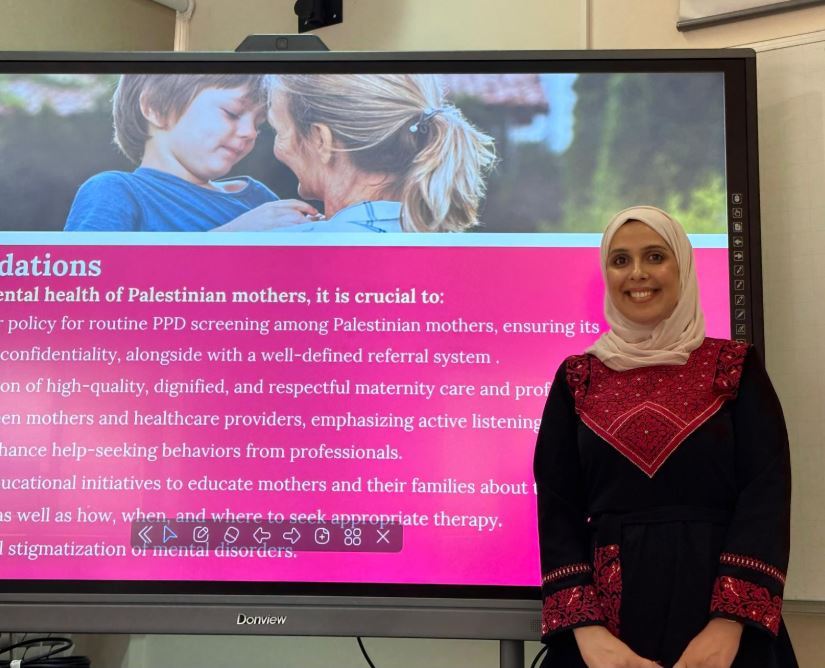 وتحت عنوان «أعراض اكتئاب ما بعد الولادة: انتشارها، وإدراك الأم الفلسطينية لها ولطرق علاجها، والعوامل المؤثرة فيها، وعلاقتها بسوء معاملة الأم خلال الولادة عن طريق بحث مختلط بين الكمي والنوعي»، أظهرت الدراسة وجود تصورات خاطئة حول اكتئاب ما بعد الولادة. وتوصلت إلى أنّ الشعور بالخجل ووصمة العار المرتبطة بالاضطرابات النفسية يزيدان من حدة المشكلة، ويؤثران سلباً على الأمهات وعائلاتهن، خاصة الرضّع المعتمدين كليًا على أمهاتهم.