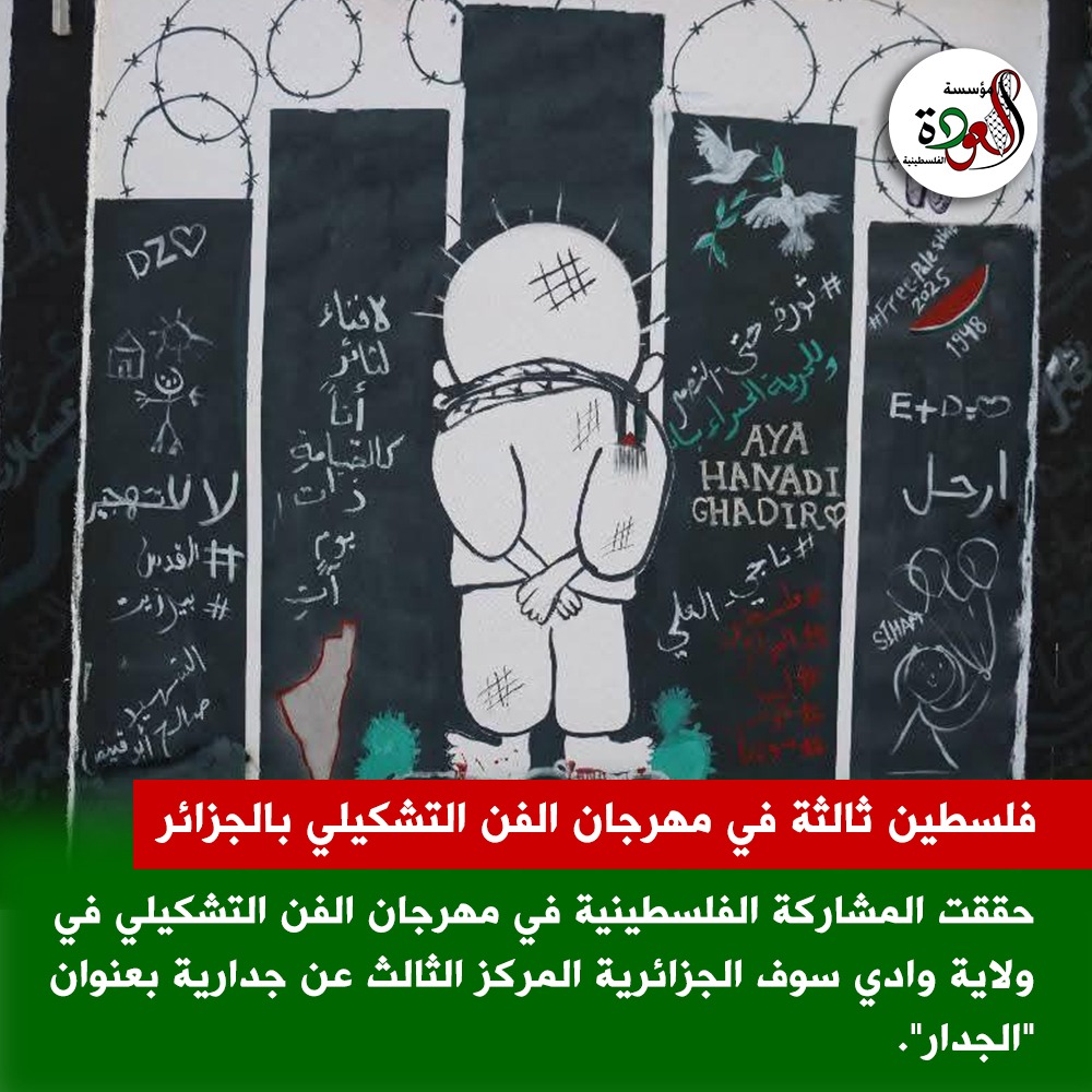 نالت المشاركة الفلسطينية في مهرجان الفن التشكيلي في ولاية وادي سوف الجزائرية المركز الثالث عن جدارية بعنوان "الجدار"، عبّرت عن معاناة الشعب الفلسطيني تحت الاحتلال وجدار الفصل العنصري.