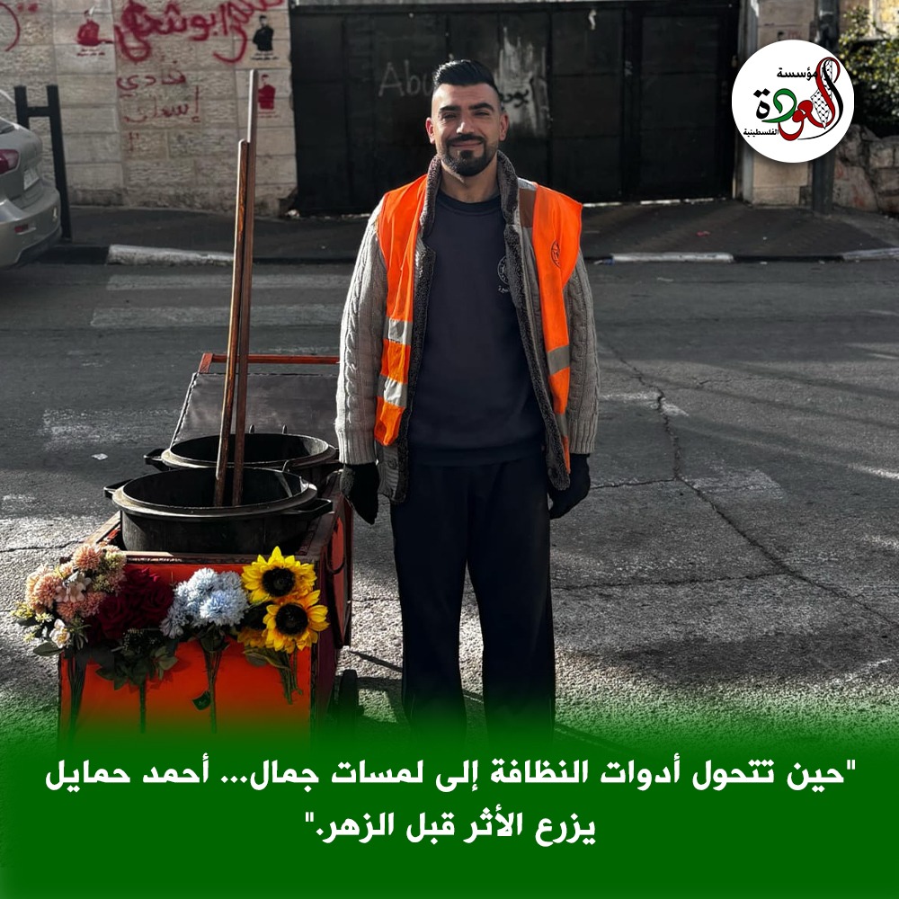 في زوايا مدينة البيرة، وبين أزقة أحيائها، لا تمرّ من مكان دون أن تلمح لمسة جمال تركها "مهندس النظافة" أحمد حمايل (33 عاماً)، الذي لا يكتفي بجمع النفايات، بل يصنع من عمله مساحةً للأمل والابتسامة.