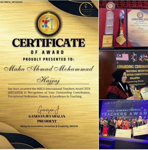 في إنجاز فلسطيني جديد يُضاف إلى سجل التميز التربوي، تُوجت المعلمة مهى محمد أحمد، من مدرسة بنات مراح رباح الثانوية التابعة لمديرية التربية والتعليم في بيت لحم، بالمركز الثاني عالمياً في مسابقة MIICA الدولية لأفضل معلم للعام 2024–2025. وجرى تكريمها خلال احتفال رسمي أقيم في العاصمة الماليزية كوالالمبور، بمشاركة دولية واسعة.