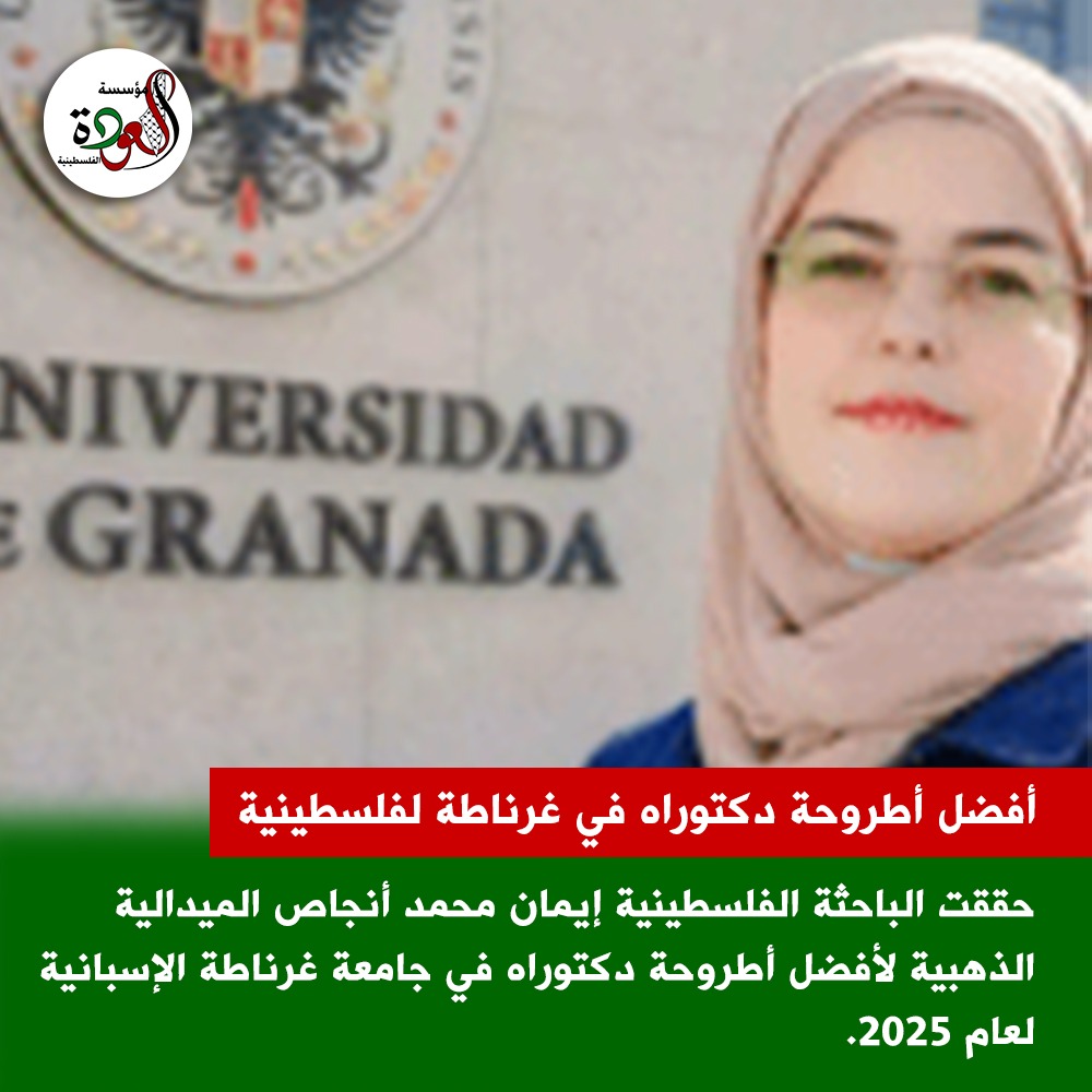 حققت الباحثة الفلسطينية إيمان محمد أنجاص إنجازاً أكاديمياً مميزاً بفوزها بالميدالية الذهبية لأفضل أطروحة دكتوراه في جامعة غرناطة الإسبانية لعام 2025، وهي جائزة مرموقة تُمنح للأبحاث الأكثر تميزاً في برامج الدراسات العليا تقديراً لأصالتها وجودتها المنهجية.