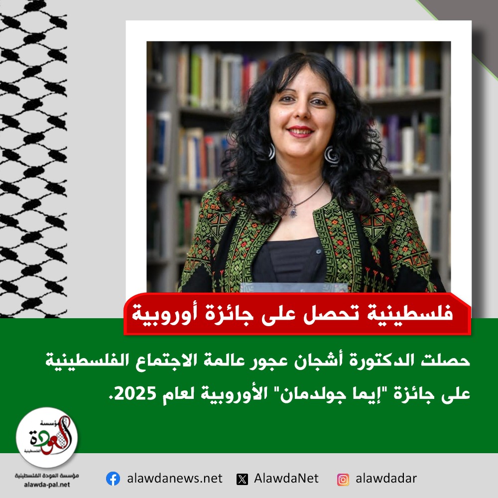 حصلت الدكتورة أشجان عجور عالمة الاجتماع الفلسطينية والمحاضرة في المملكة المتحدة على جائزة إيما جولدمان الأوروبية لعام 2025، تقديراً لأبحاثها الرائدة في مجال النسوية وعدم المساواة الاجتماعية.