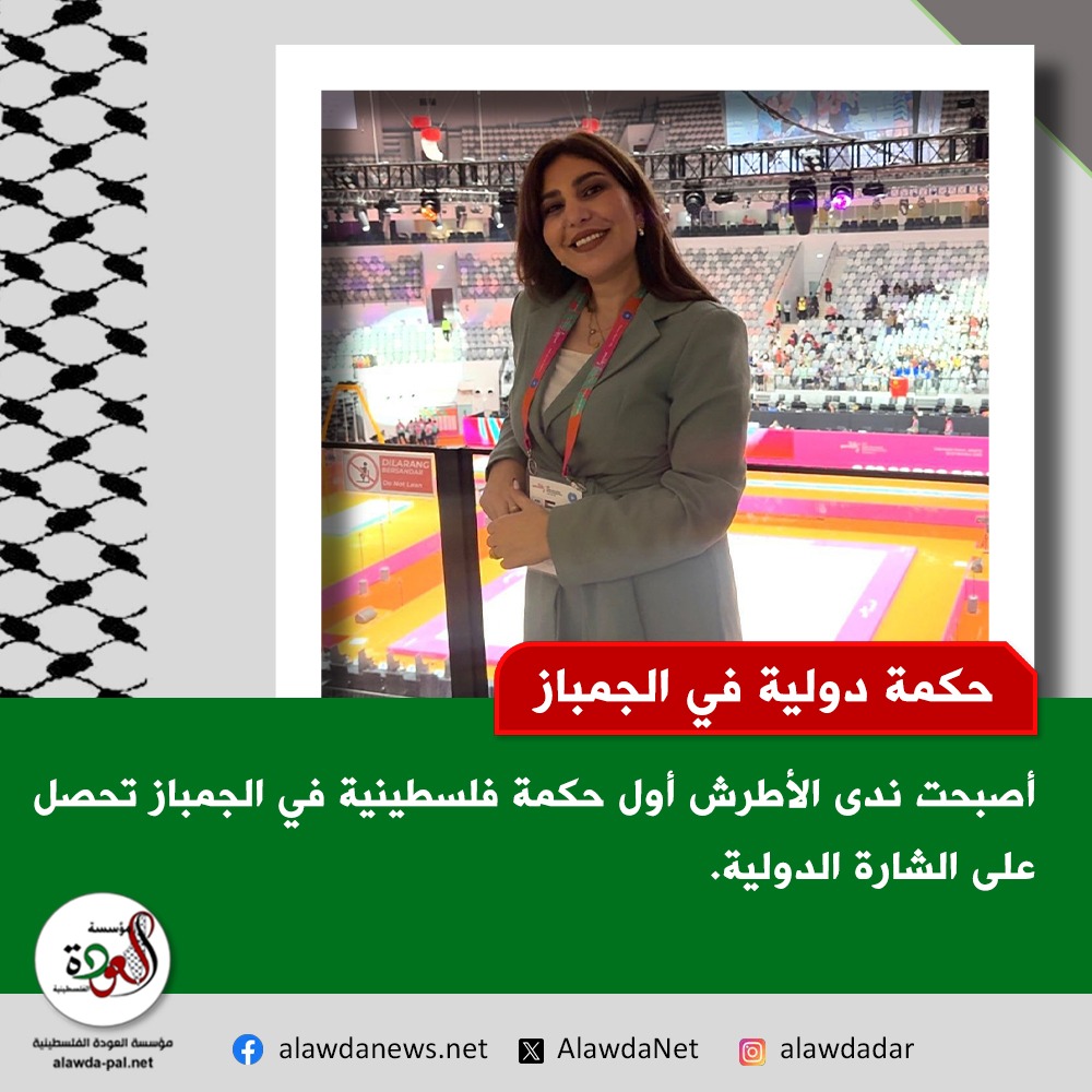 نجحت الفلسطينية ندى الأطرش في اجتياز الامتحان الدولي المعتمد لتحكيم الجمباز الفني للسيدات، لتحصل على الشارة الدولية كأول حكمة فلسطينية في هذا المجال، في إنجاز يفتح الأبواب أمام التحكيم الفلسطيني للمشاركة في البطولات القارية والدولية.