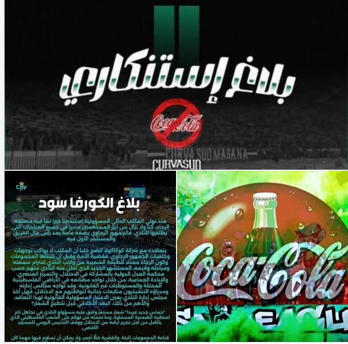 جماهير الرجاء المغربي ترفض التعاقد مع "كوكاكولا" تضامناً مع فلسطين