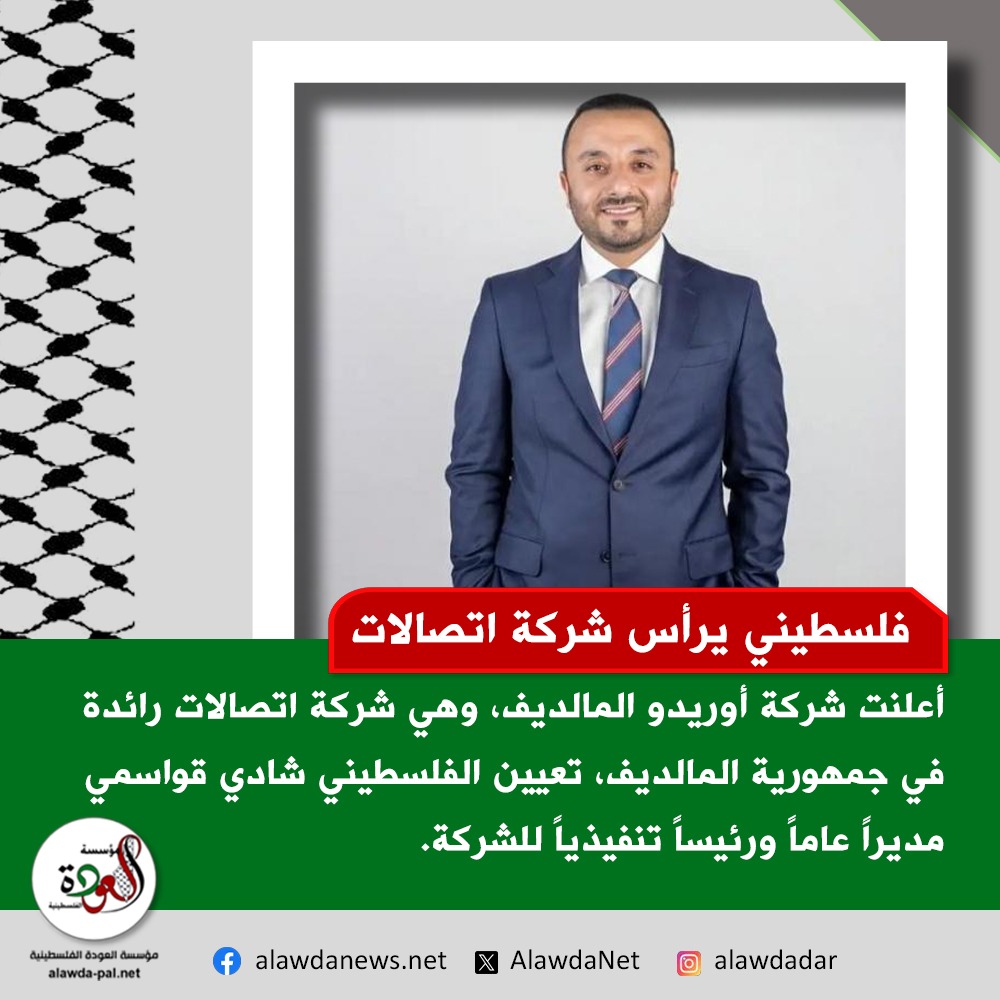 أعلنت شركة أوريدو المالديف، وهي شركة اتصالات رائدة في جمهورية المالديف، تعيين الفلسطيني شادي قواسمي مديراً عاماً ورئيساً تنفيذياً للشركة.