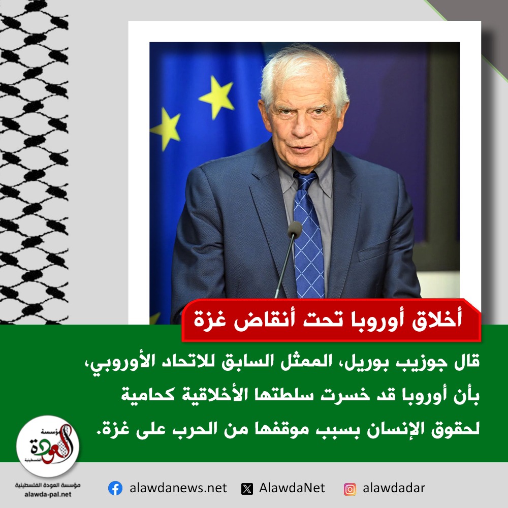 صرّح جوزيب بوريل، الممثل الأعلى السابق للاتحاد الأوروبي للشؤون الخارجية، بأن أوروبا قد خسرت سلطتها الأخلاقية كحامية لحقوق الإنسان، معتبراً أن موقفها من الحرب على غزة قد أجهز على صورتها التاريخية كنموذج قيمي للعالم.