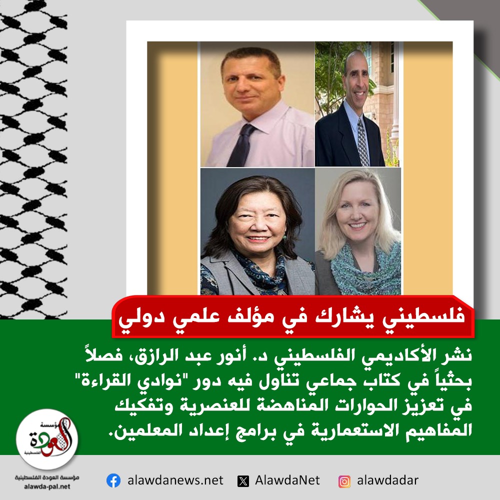 نشر الأكاديمي الفلسطيني د. أنور عبد الرازق، فصلاً بحثياً في كتاب جماعي صدر مؤخراً في الولايات المتحدة الأميركية، تناول فيه دور "نوادي القراءة" بين أعضاء هيئة التدريس في تعزيز الحوارات المناهضة للعنصرية وتفكيك المفاهيم الاستعمارية في برامج إعداد المعلمين.