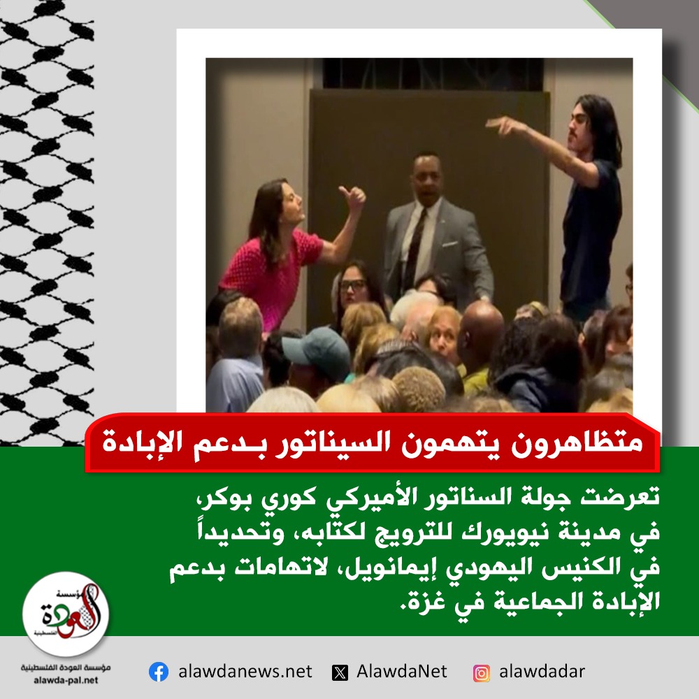 تعرضت جولة السناتور الأميركي كوري بوكر، في مدينة نيويورك للترويج لكتابه، وتحديداً في الكنيس اليهودي إيمانويل، لمقاطعات متكررة من قِبل متظاهرين مؤيدين لفلسطين اتهموه بدعم الإبادة الجماعية في غزة.