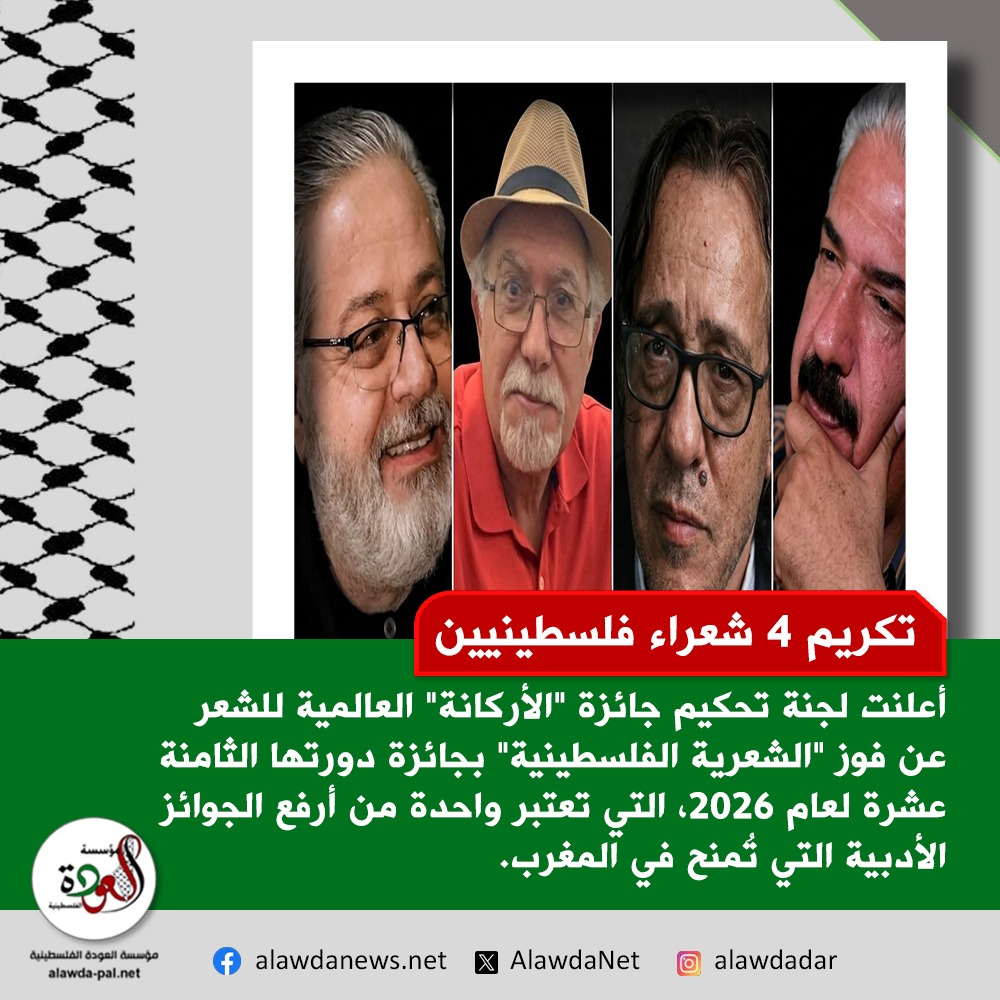 أعلنت لجنة تحكيم جائزة "الأركانة" العالمية للشعر عن فوز "الشعرية الفلسطينية" بجائزة دورتها الثامنة عشرة لعام 2026، التي تعتبر واحدة من أرفع الجوائز الأدبية التي تُمنح في المغرب.