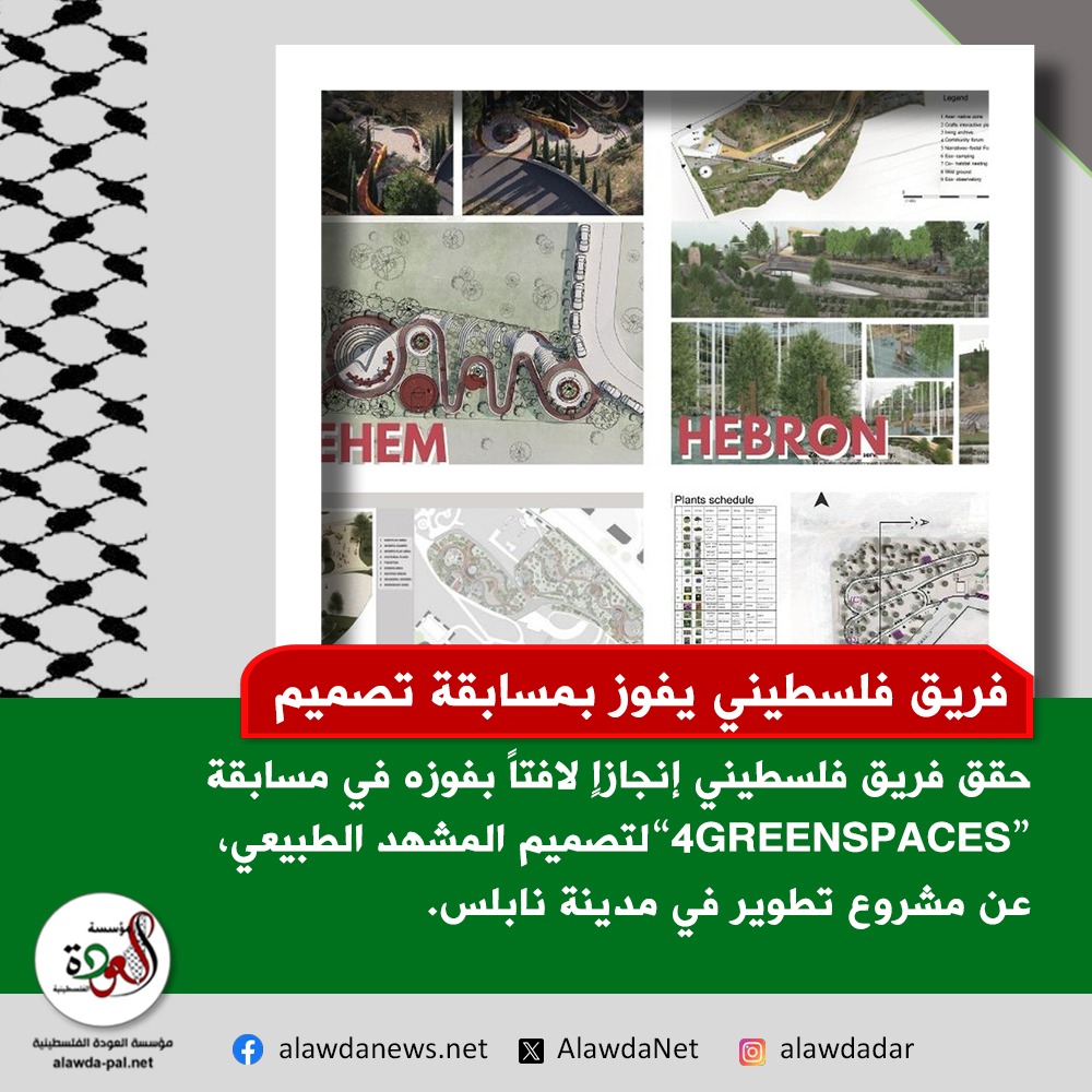 حقق فريق فلسطيني إنجازاِ لافتاً بفوزه في مسابقة “4GREENSPACES” (أربع مساحات مفتوحة) لتصميم المشهد الطبيعي، عن مشروع تطوير "حديقة جمال عبد الناصر" في مدينة نابلس، مقدّماً نموذجاِ مبتكراً للمساحات الحضرية المستدامة.