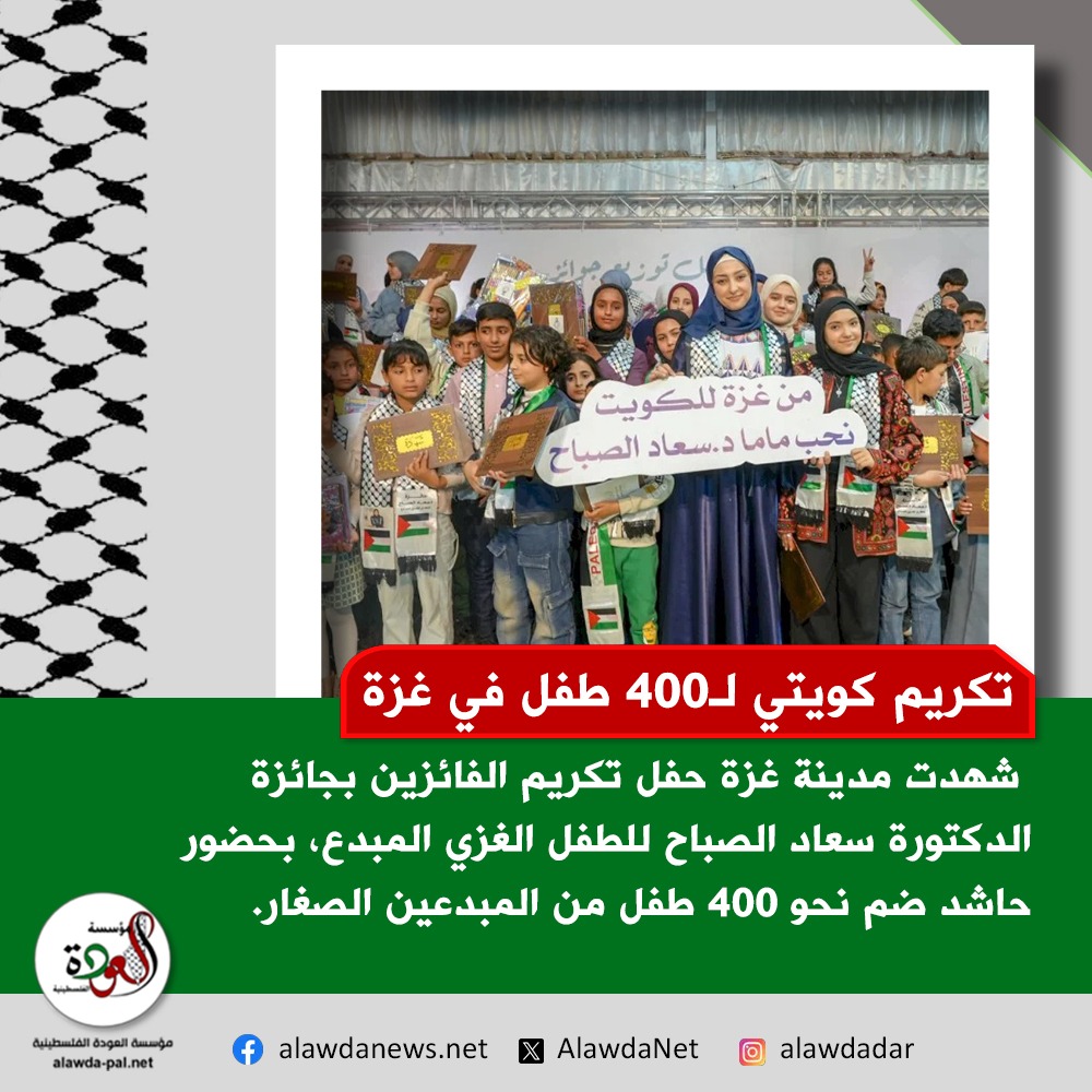 تكريم كويتي لـ 400 طفل في غزة ضمن جائزة "الطفل الغزي المبدع"