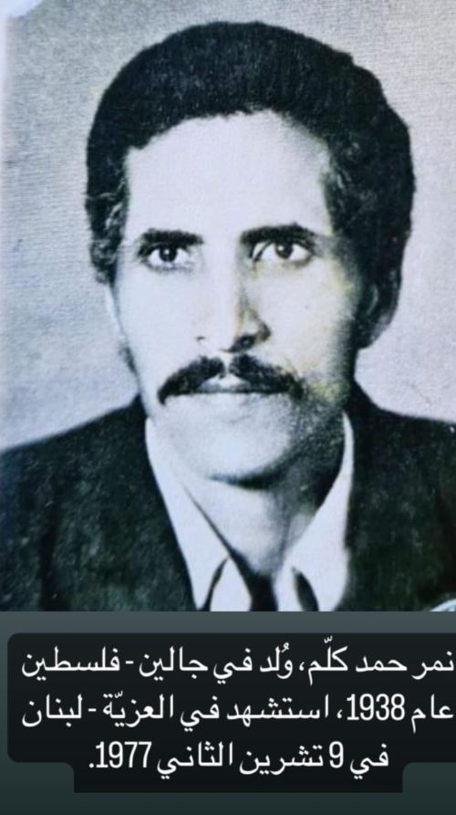 استُشهد نمر كلّم (أبو أحمد) وحنينه إلى أرض عشيرته، عرب السّمنيّة في جالين. كان قلبه معلقاً هناك، بين الحقول والبيوت الطينية، بين الزيتون والصبّار، بين ذاكرة الطفولة وحلم العودة. كم كان يشتاق إلى رائحة التراب في صباحات الشتاء، وإلى ثمر التين يتدلى من الأغصان كحباتٍ من ذهب، وإلى زيتون بلاده حين يُعصر في معاصر فلسطين، وإلى كروم العنب التي تمتد كجدائل خضراء تراقصها نسائم المساء. كان يحلم أن يعود يوماً ليقطف عنقوداً بيديه، لكن الموت سبقه قبل أن يتحقق الحلم.