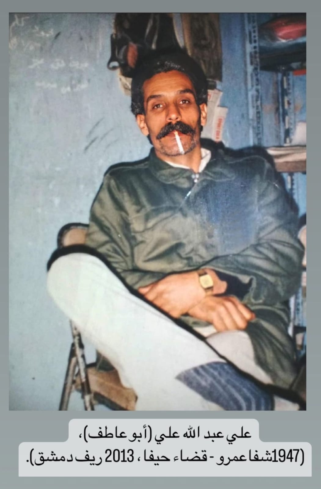 كاتب فلسطينيفي زحمةِ الأيامِ وصخبِ الحياةِ، كان علي عبدالله علي، المعروف بأبي عاطف، شعلةً لا تنطفئ، رجلاً استمدَّ قوَّته من شموخِ الجبالِ وشجاعته من زئيرِ الأسود. وُلِدَ عام 1947 في شفا عمرو - قضاء حيفا، وكان صورةً حيَّةً للنبلِ والمروءَةِ، يجمع بين التواضعِ الذي يطأطئ الهاماتِ والشهامةِ التي ترفعُ القامات.