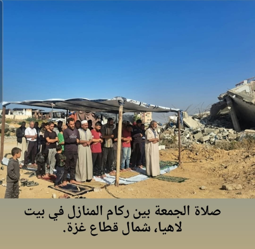 وهناك، بين الركام نفسه، يصلّي رجال غزة صلاةَ يوم الجمعة. يقفون حفاةً فوق ترابٍ ممزوجٍ بالغبار والدم، يفرشون الأرض بالإيمان حين لا تبقى سجادة، ويرفعون أيديهم إلى السماء التي تُظلّهم بالقصف لا بالغيوم. يؤمّهم شيخٌ فقد بيته، ويحرس صفوفَهم شابٌّ فقد صديقه، ويكبرون تكبيرةً تهزّ الحصار كلَّه. لا مئذنة تُنادي، لكن القلوب هي المآذن، ولا مسجد قائم إلا روح الجماعة التي تُصلّي حيثما بقي حجرٌ من وطنٍ يتّسع للركوع والسجود. في غزة حتى الجمعة تُصلَّى على عجل، لكن بحضورٍ لا يشبه إلا حضورَ من يعرف أن الله وحده لا تُغلق أبوابه.
