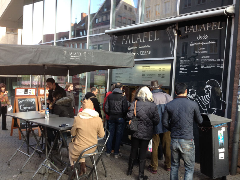 ومن الأطباق الفلسطينية يقدم المطعم الكنافة النابلسية، وحساء الفستق الحلبي، كما عين حليم قبل شهرين لاجئ سوري للعمل في المطبخ الذي ساعد في إثراء القائمة الشامية للمأكولات.