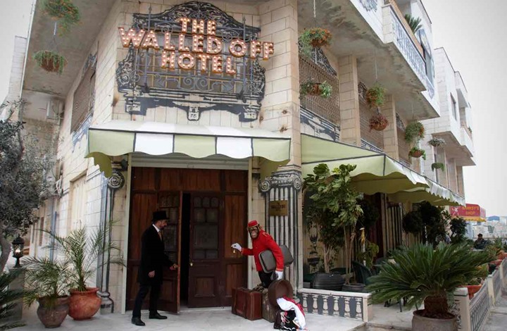 وتقول الصحيفة إن "فندق (ذا وول أوف هوتيل/ الفندق المسور)، الذي لا يرى فيه النزيل إلا الجدار العنصري الذي أقامته إسرائيل على أراضي الفلسطينيين، يحمل بصمات فنان الجداريات البريطاني بانسكي، ويقول صاحبه إن الفندق لديه أسوأ منظر في العالم، ولا تحصل الغرف العشر الموجودة فيه إلا على 25 دقيقة من ضوء الشمس يوميا".