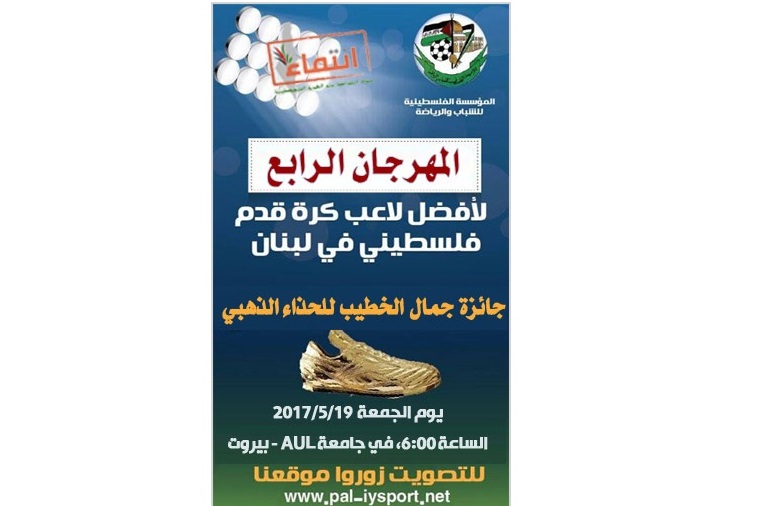 تستعدّ المؤسسة الفلسطينية للشباب والرياضة لإقامة مهرجانها السنوي الرياضي لاختيار أفضل لاعب كرة قدم فلسطيني في الدوري اللبناني، وتحمل الجائزة لهذا الموسم 2016-2017 اسم "جائزة جمال الخطيب للحذاء الذهبي".