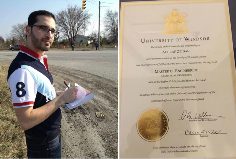فقد منحت جامعة "وندسور Windsor" الكندية المهندس الفلسطيني أشرف زيدان، درجة الماجستير في الهندسة الميكانيكية بعد مناقشةٍ لرسالته يوم أمس.
