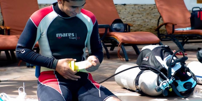 ورغم أن خليل لا يُجيد السباحة، إلا أن تحفيز رفقائه شكل دافعا له للمغامرة، ومع ارتدائه لبدلة الغوص ووضعه جرة الأوكسجين على ظهره انتابه شعور "لا يوصف" دفعه للإصرار على إتقان هذه الرياضة.