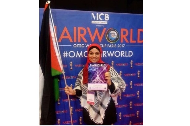 وفازت الكوافيرة الفلسطينية عايده سليمان عضو المنتخب الفلسطيني للتجميل في بطولة كأس العالم فرنسا 2017.