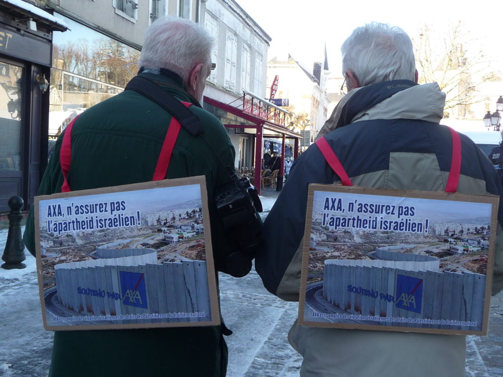 أطلقت حركة مقاطعة وسحب الاستثمارات منها وفرض العقوبات عليها "BDS " حملةً لمقاطعة شركة "AXA" التأمينية الفرنسية لتعاقدها في مشاريع مع الاحتلال الاسرائيلي وانطلاقها في العديد من المدن الفرنسية.