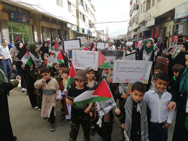 وانطلق الأطفال في الكرنفال حاملين أعلام فلسطين ولافتاتٍ تؤكد على التمسك بالأرض وتثني على دور الأم، بمشاركة اللجنة الشعبية والأهالي.