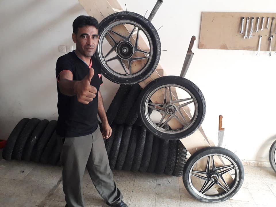 وجد الكثير من الشباب في قطاع غزة أنفسهم يستسلمون للأزمات التي تعصف بالقطاع، لكنّ الشاب عبد الله الرضيع، لم تحدّ تلك الظروف من شغفه في العمل، فقد استطاع عبد الله إعادة إصلاح اطارات الدراجات النارية لتصبح صالحةً للاستعمال ويُطيلُ عمرها ضمن تركيبةٍ من مواد أعدّها بنفسه.