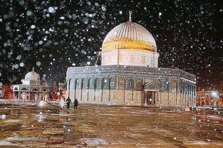 من غير سابق ترتيبٍ وبلا دعواتٍ للمشاركة في حملة تغريد، غزت صورةٌ خلابة تأسر القلوب مواقع التواصل الاجتماعي، لمسجد قبة الصخرة المتلألأة في الأضواء تحت الثلج أثناء العاصفة التي ضربت المنطقة ليلة أمس.