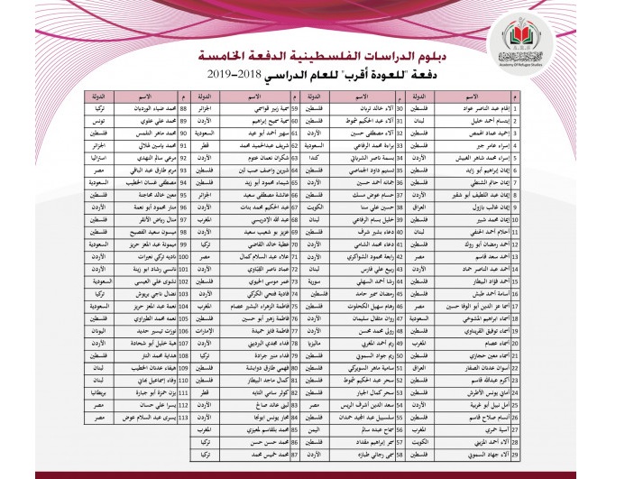 تحت إسم فوج "للعودة أقرب"، خرّجت أكاديمية دراسات اللاجئين كوكبة جديدة من خريجي دبلوم الدراسات الفلسطينية، بعد اجتياز عامٍ دراسيّ كامل