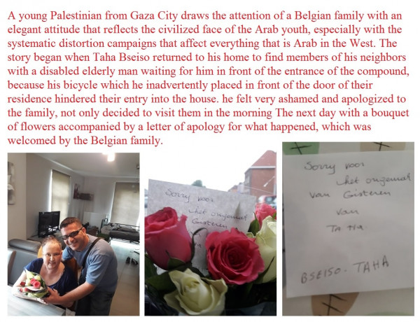عكسَ شابٌ فلسطيني من قطاع غزة مقيم في بلجيكا الأخلاق العربية والإسلامية القائمة على التسامح والمحبة، بعيداً عن العنصرية التي تطغى على كافة المجتمعات.