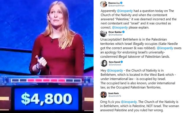 بعد موجة غضبٍ واجهتها الشابة الأميركية كيت نيدل، خلال برنامج المسابقات والمعلومات الأميركي «جيوباردي»، غرّدت نيدل على حسابها على تويتر بـ"فلسطين يجب أن تكون حرة".