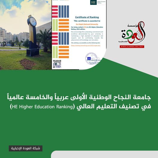 جامعة النجاح الوطنية الأولى عربياً والخامسة عالمياً في تصنيف التعليم العالي (HE Higher Education Ranking)