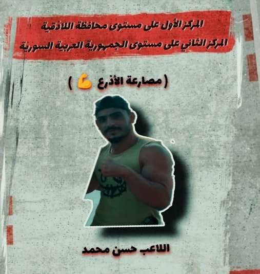الفلسطيني حسن توسكا الأول على محافظة اللاذقية والثاني على مستوى الجمهورية السورية في رياضة مصارعة الأذرع