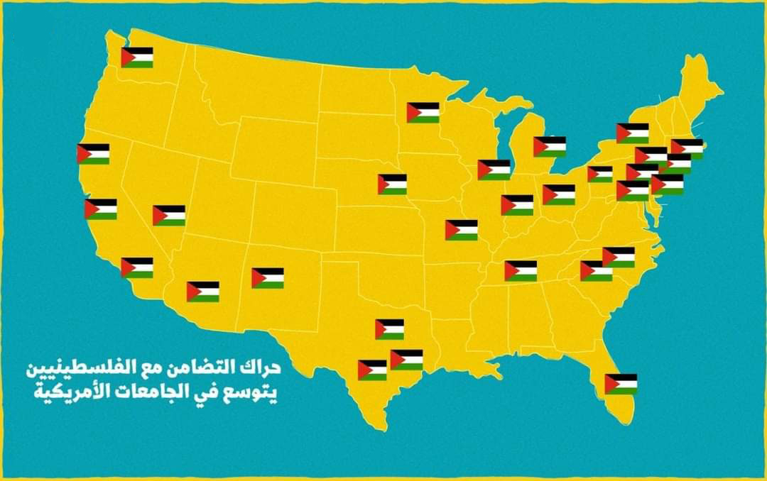 توسّعت الاحتجاجات الطلابية في الولايات المتحدة الأميركية تنديدًا بالعدوان الصهيوني على غزّة، في وقت اعتقلت السلطات مئات المحتجين، فيما نددت منظمات حقوقية بوقوع انتهاكات ضدّ المتظاهرين، وإليكم إحصاء بأسماء الجامعات وأبرز مطالبها: