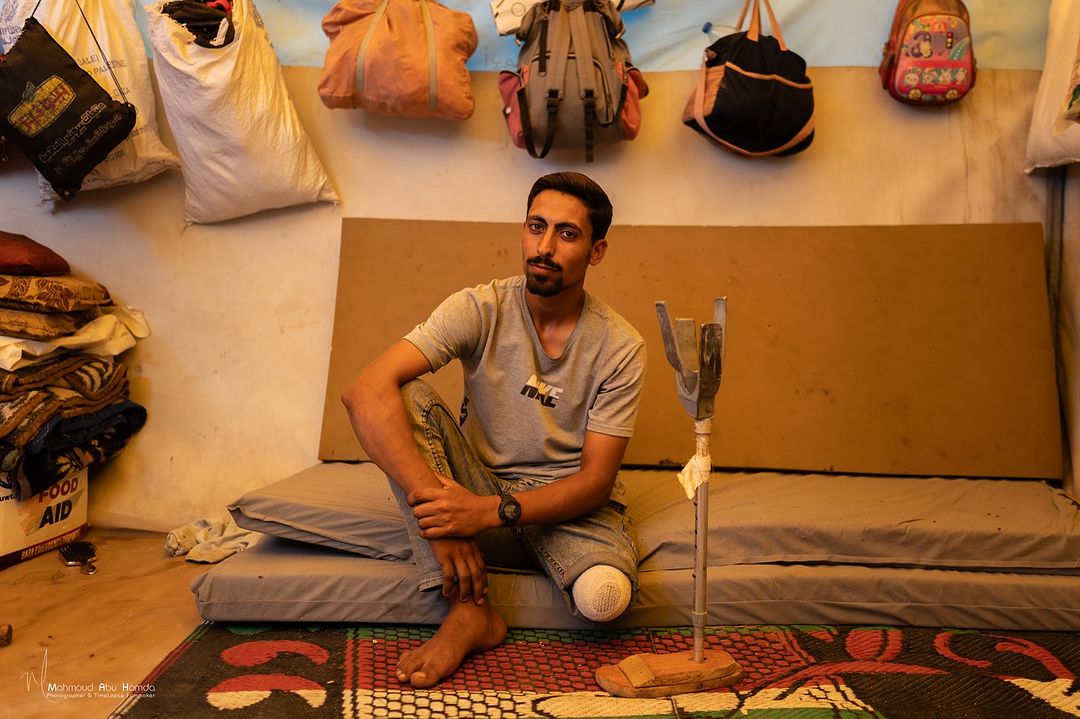 أوضاعٌ دفعت بالشاب "عبد الله قلجة" للتفكير بصناعة طرفٍ صناعي بأدوات بسيطة بعد أن خسر قدمه في قصفٍ إسرائيلي لمنزل إحدى العائلات المجاورة لمنزله.