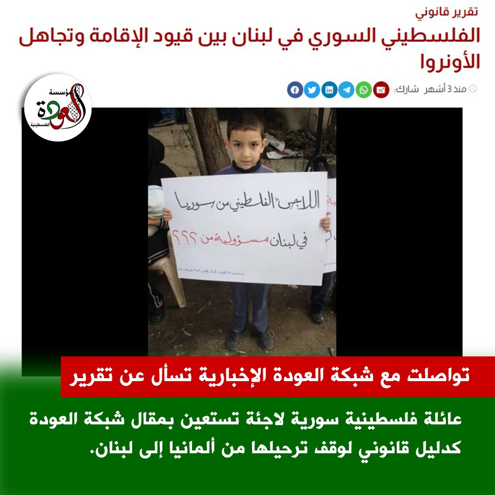في سابقة تؤكّد أهمية الإعلام الحقوقي، استخدمت عائلة فلسطينية لاجئة من سورية مقالاً نشرته شبكة العودة الإخبارية كوثيقة داعمة في ملفها القانوني أمام المحكمة الألمانية، لمحاولة وقف قرار ترحيلها إلى لبنان.