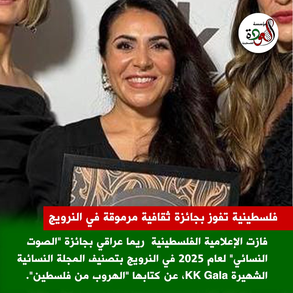فازت الإعلامية الفلسطينية النرويجية ريما عراقي بجائزة "الصوت النسائي" لعام 2025 في المجلة النسائية الشهيرة KK Gala.