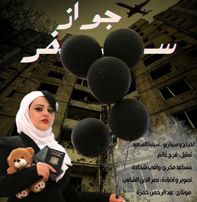 ويدور في موقع تصوير واحد، لكنه يفتح نوافذ على ألف حكاية من المنفى، حيث تظهر بطلة الفيلم كمضيفة طيران ترتدي السواد، تحمل جواز سفر متعب ودبًّا صغيرًا، وتطلّ بعينين تسألان: "إلى أين يعود من لا وطن له؟ ومن يمسح دموع من لا صوت لهم؟"