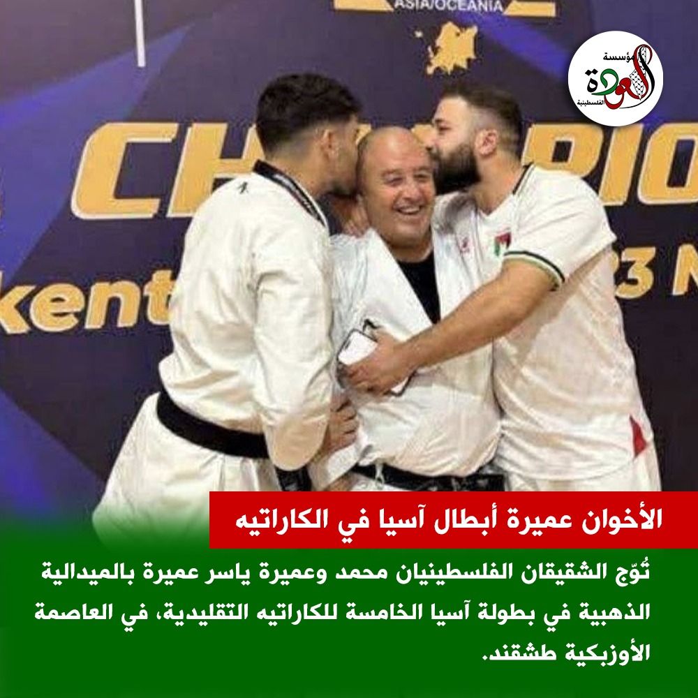 في العاصمة الأوزبكية طشقند، تُوّج الشقيقان الفلسطينيان محمد ياسر عميرة وعميرة ياسر عميرة بالميدالية الذهبية في بطولة آسيا الخامسة للكاراتيه التقليدية.