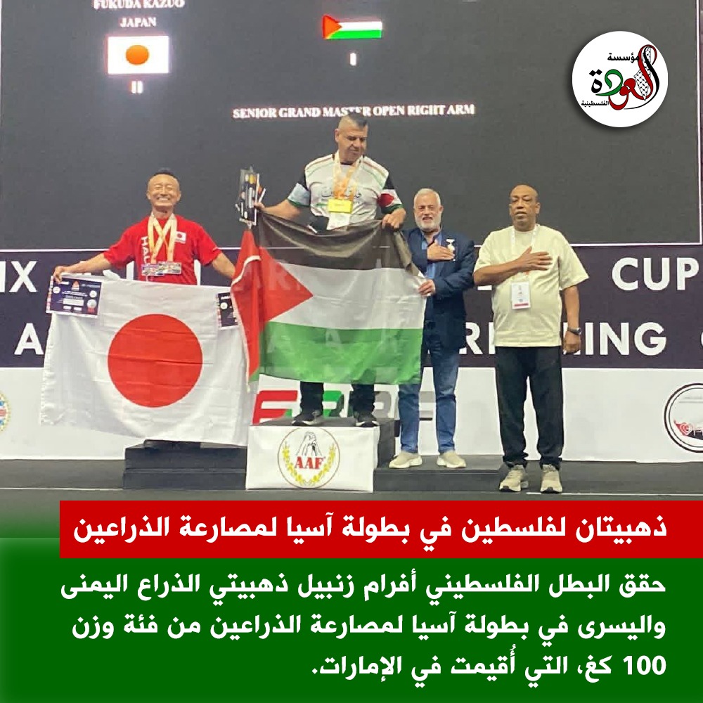 حقق البطل الفلسطيني أفرام زنبيل ذهبيتي الذراع اليمنى واليسرى في بطولة آسيا لمصارعة الذراعين – فئة وزن 100 كغ، التي أُقيمت في إمارة عجمان بمشاركة 25 دولة وأكثر من 300 لاعب.