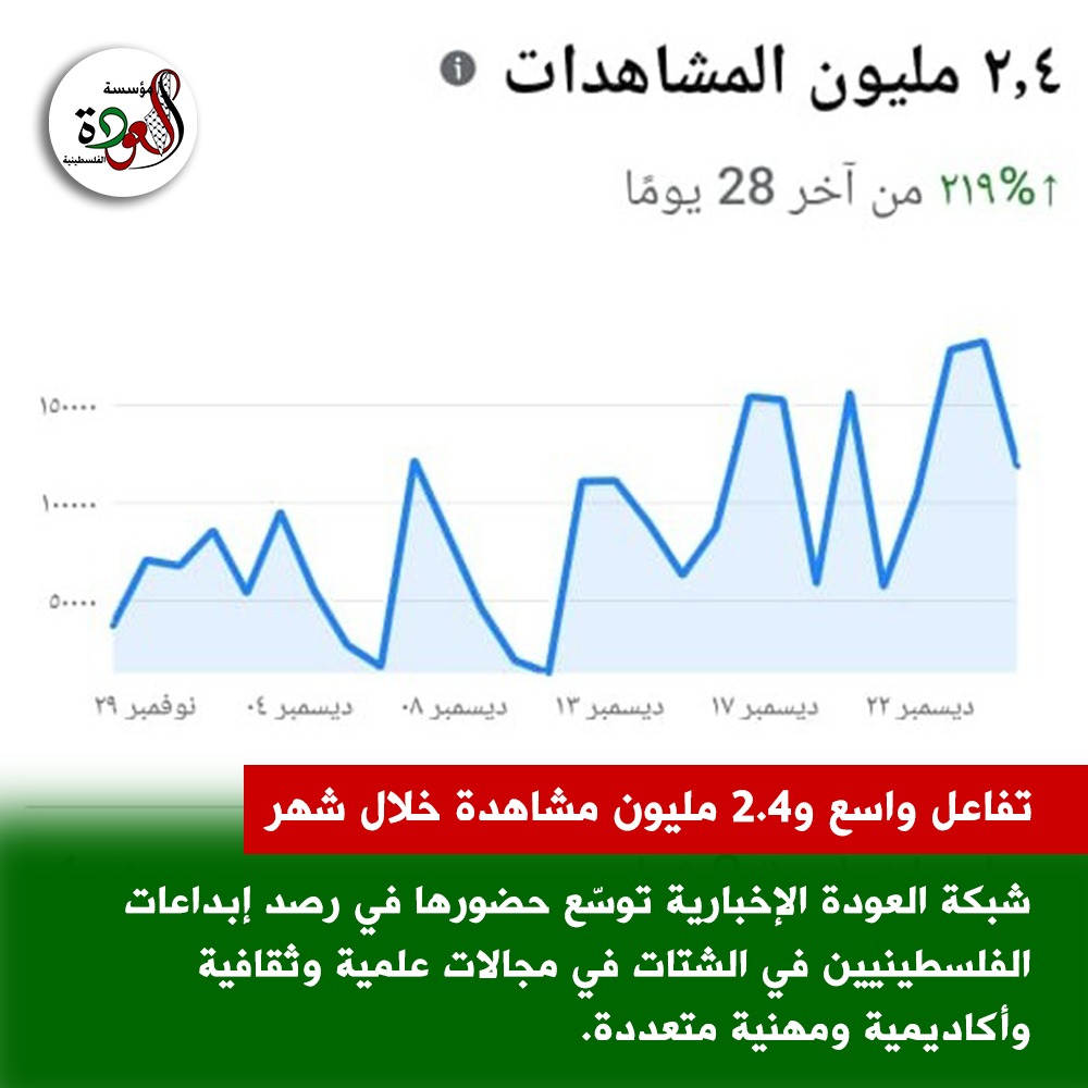 2.4 مليون مشاهدة خلال شهر.. شبكة العودة الإخبارية توسّع حضورها في رصد إبداعات الفلسطينيين في الشتات