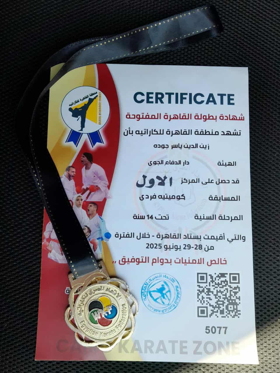 في إنجاز رياضي فلسطيني لافت، أحرز الفتى زين الدين ياسر جوده المركز الأول والميدالية الذهبية في بطولة القاهرة للكاراتيه – فئة تحت 14 سنة، ممثلًا عن نادي دار الدفاع الجوي، وذلك في البطولة التي أُقيمت على أرض ستاد القاهرة الدولي.