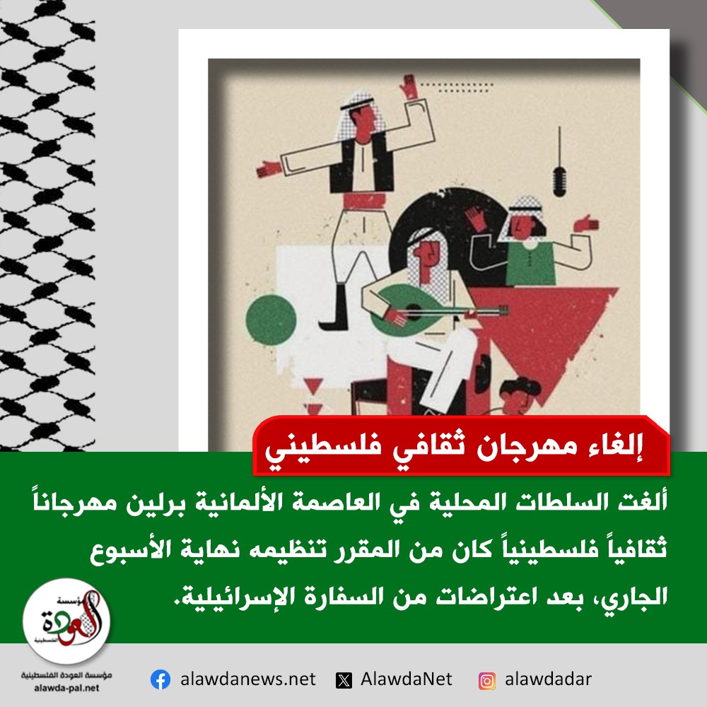 ألغت السلطات المحلية في العاصمة الألمانية برلين مهرجاناً ثقافياً فلسطينياً كان من المقرر تنظيمه نهاية الأسبوع الجاري، في خطوة أثارت جدلاً واسعاً حول حرية التعبير والانحياز في التعامل مع الفعاليات الفلسطينية.