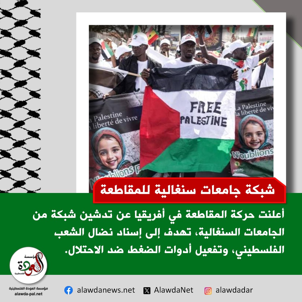 أعلنت حركة المقاطعة في أفريقيا عن تدشين شبكة جديدة تضم نخبة من الجامعات السنغالية، تهدف إلى إسناد نضال الشعب الفلسطيني في انتزاع حقوقه غير القابلة للتصرف، وتفعيل أدوات الضغط الأكاديمي والسياسي ضد الاحتلال.
