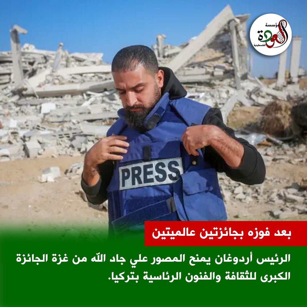 الرئيس أردوغان يمنح مصور فلسطيني الجائزة الكبرى للثقافة والفنون الرئاسية بتركيا