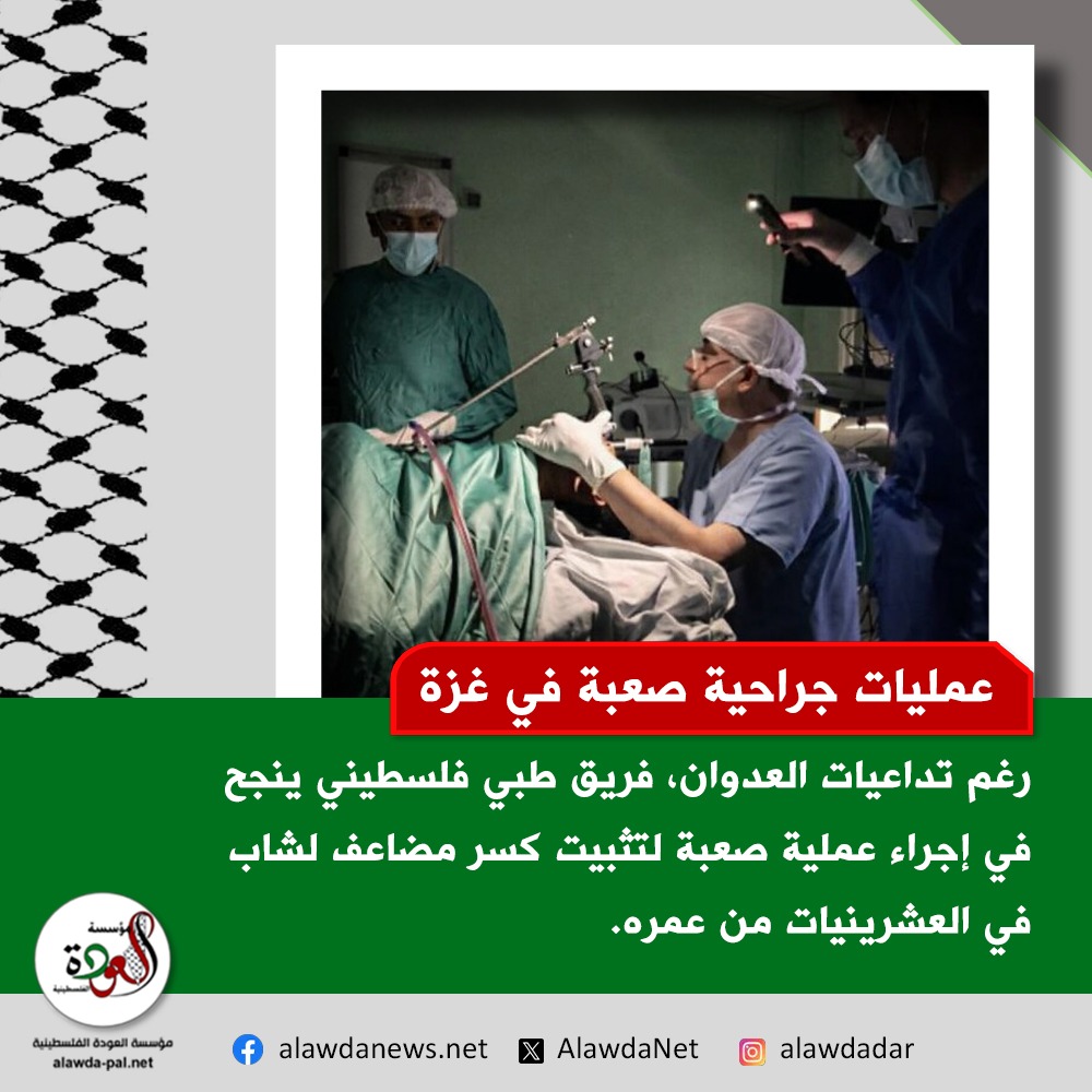 رغم تداعيات العدوان... فريق طبي فلسطيني ينجح في إجراء عملية صعبة لتثبيت كسر لعشريني
