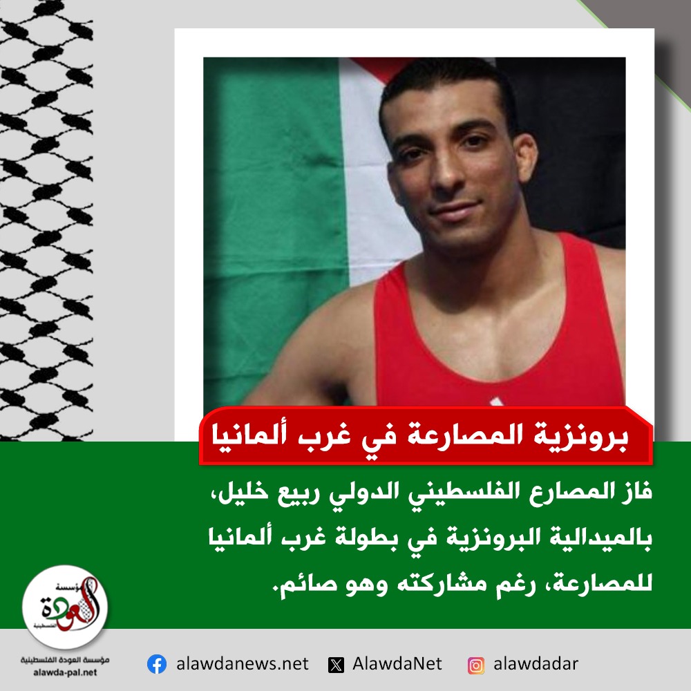 فاز المصارع الفلسطيني الدولي ربيع خليل، بالميدالية البرونزية في بطولة غرب ألمانيا للمصارعة.