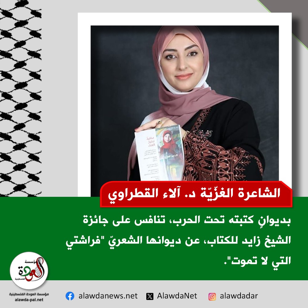 يشار إلى أنّ آلاء القطراوي حائزة على درجة الدكتوراه في الأدب والنقد من الجامعة الإسلامية بغزة. وتُعدّ من أبرز الأصوات الشعرية الفلسطينية المعاصرة، حيث تعكس أعمالها معاناة الشعب الفلسطيني تحت الاحتلال، وتُعبّر عن الألم والأمل في آنٍ واحد.